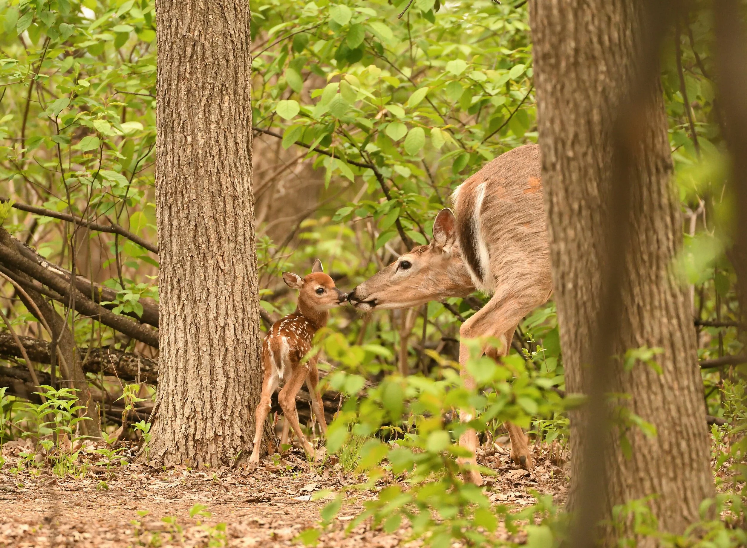 We watched each other, the doe and I, as her fawn scampered back and forth in the pokeweed. Convinced the large thing that she saw in the tree had not been there the day before, she bobbed her head attempting to figure out this new part of her environment. I remained motionless and called on the saint-like patience required to out-wait an inquisitive deer. Despite its mother’s suspicions, the fawn continued to scamper around its edible playground.